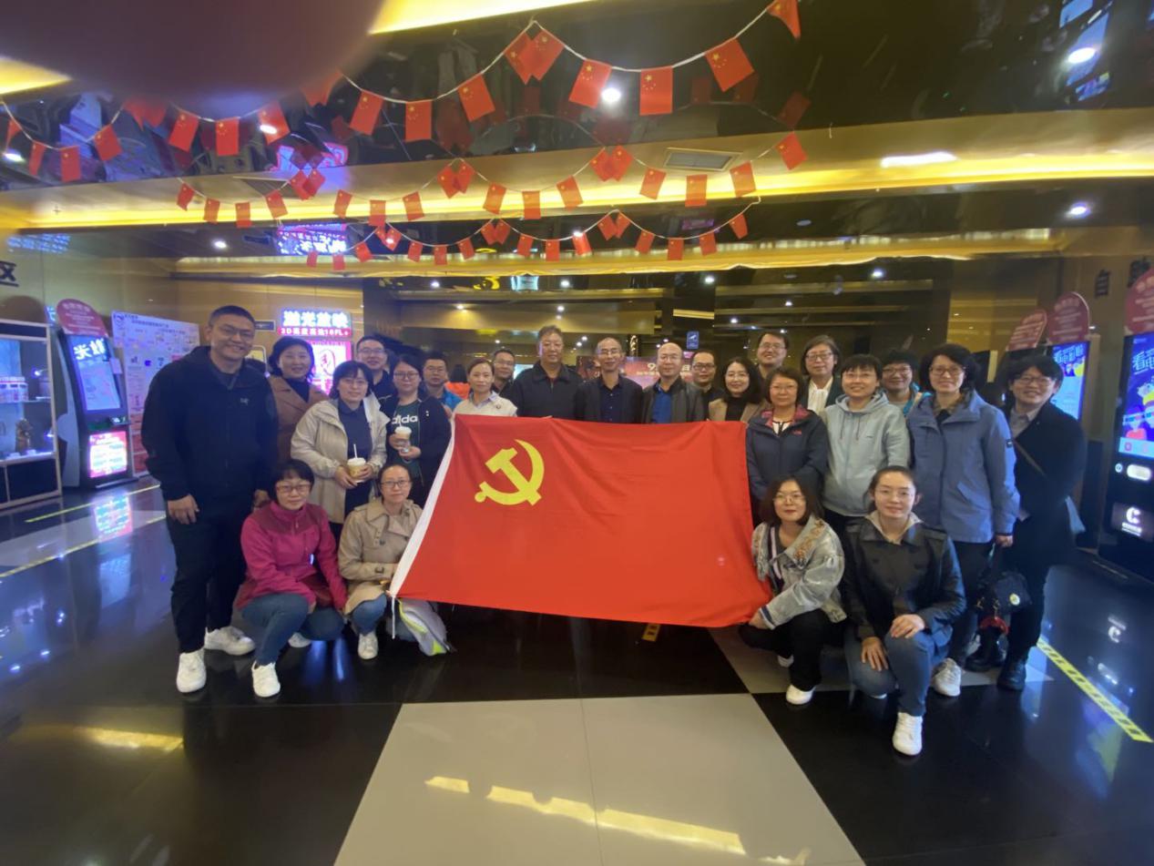 党员教师一同观看抗美援朝题材影片《长津湖》。