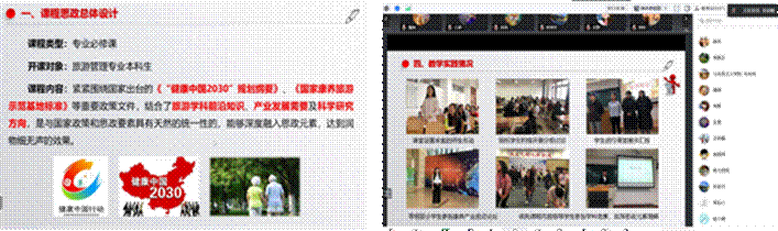 旅游系李凌雁老师对自己所授课程《康养旅游概论》做了展示。李老师从课程思政总体设计、考核评价机制、教学实践情况等方面做了全面介绍。