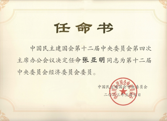 张亚明教授被任命为民建中央经济委员会委员,是体育投注平台